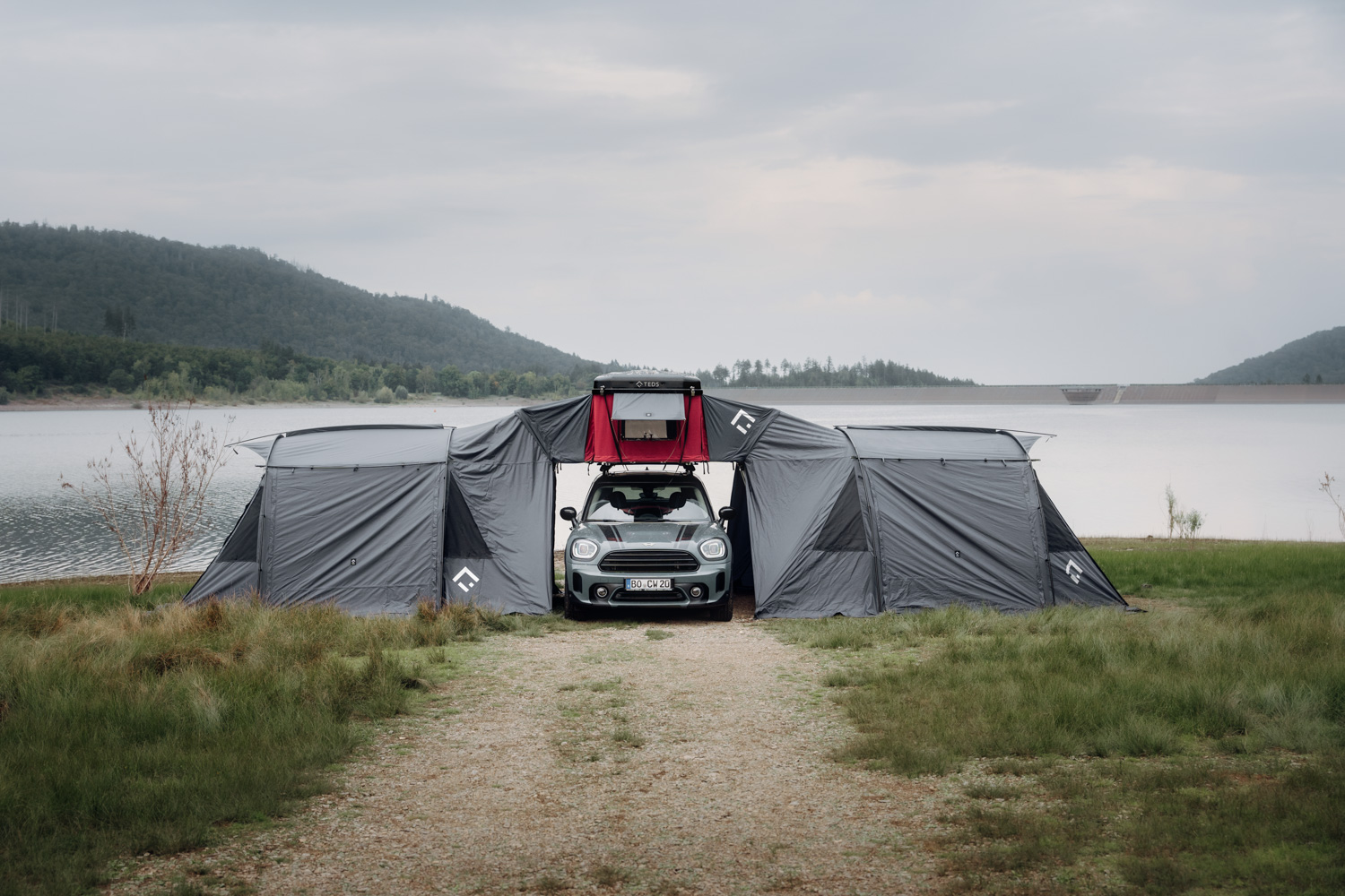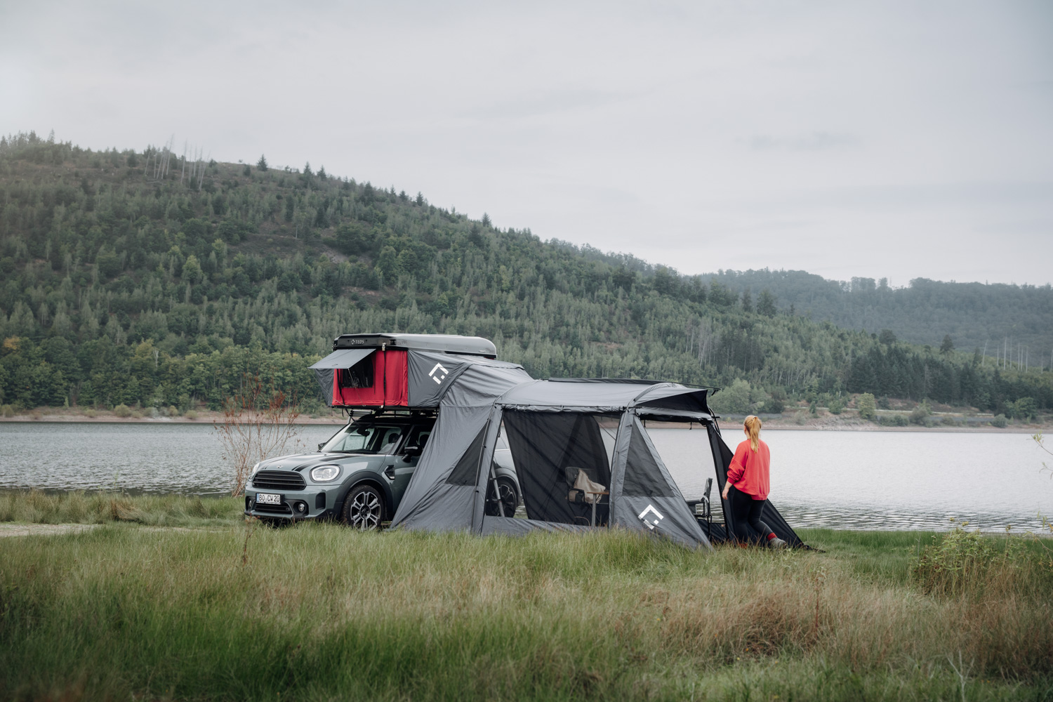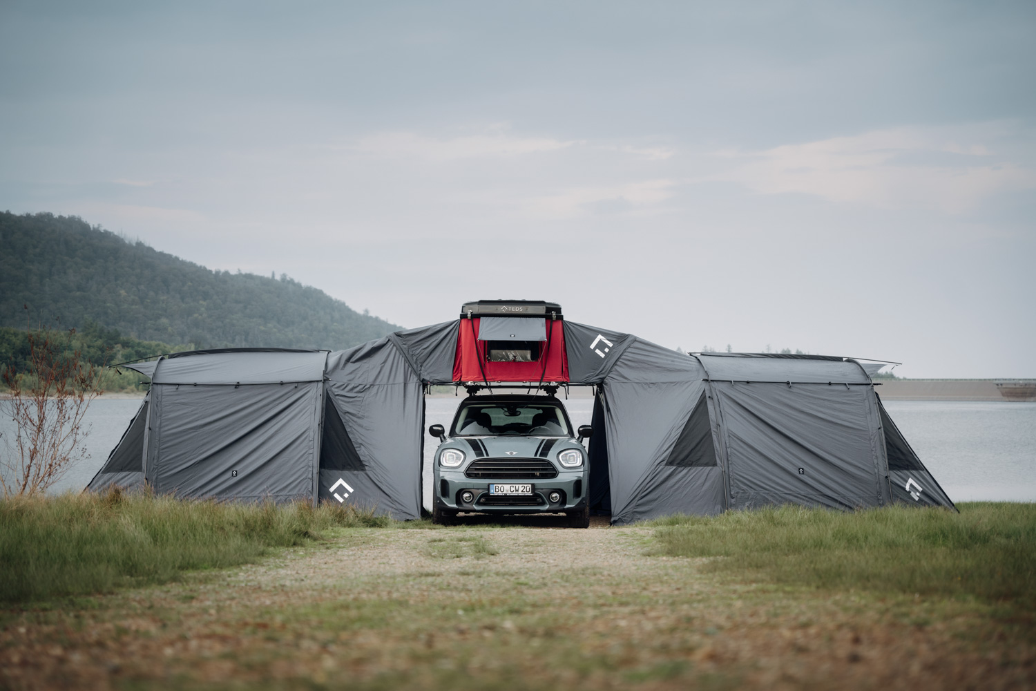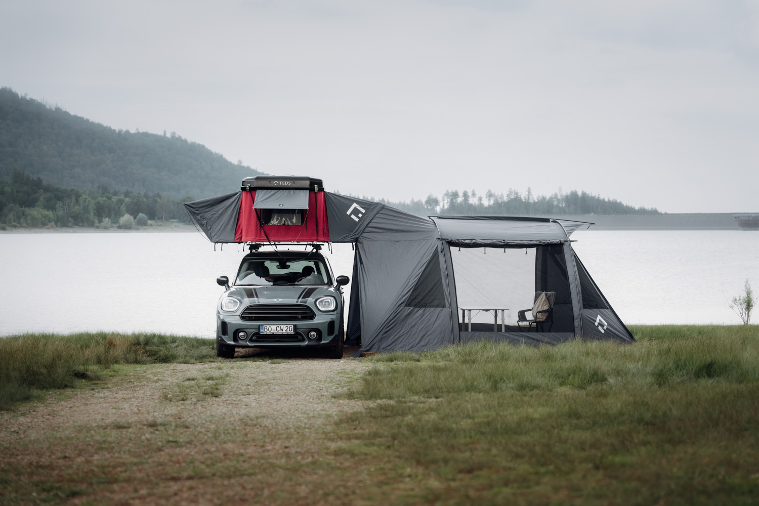 More space, more freedom: With the annexroom, your TedPop becomes a fully-fledged outdoor home. The extension convinces with enormous space and can be entered from all sides. Generous openings create an airy living feeling and allow you a clear view of nature at all times – whether at breakfast or while relaxing. Wind, sun, rain or mosquitoes stay outside. Particularly clever: The annexroom is self-supporting, so you can move your car flexibly at any time. And as a real highlight: Thanks to its two-sided use, the TedPop allows two awnings at the same time – ideal for families or longer stays.