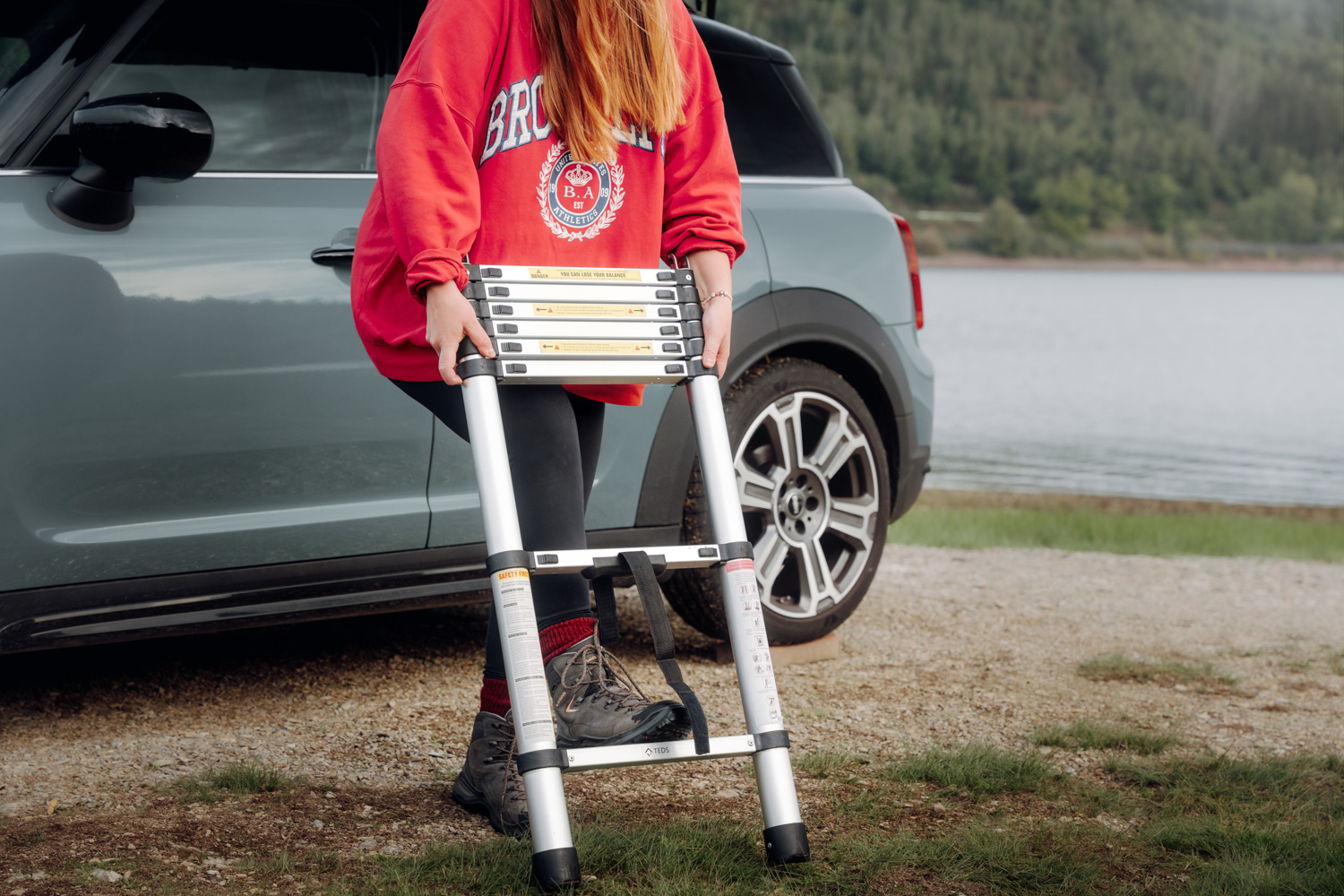 The roof tent weighs about 95kg. Thanks to the removable ladder, the weight can be reduced by around 6 kg.