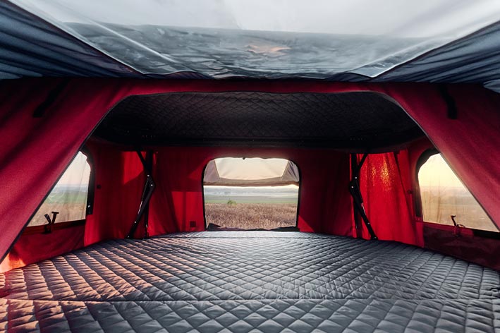 The roof tent comfortably offers space for up to four people. For those who like to stretch out, because the sleeping level is one of the largest among the roof tents.