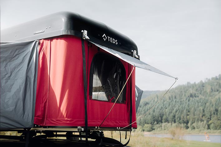 Hard shell roof tent from TEDS that can be opened on both sides